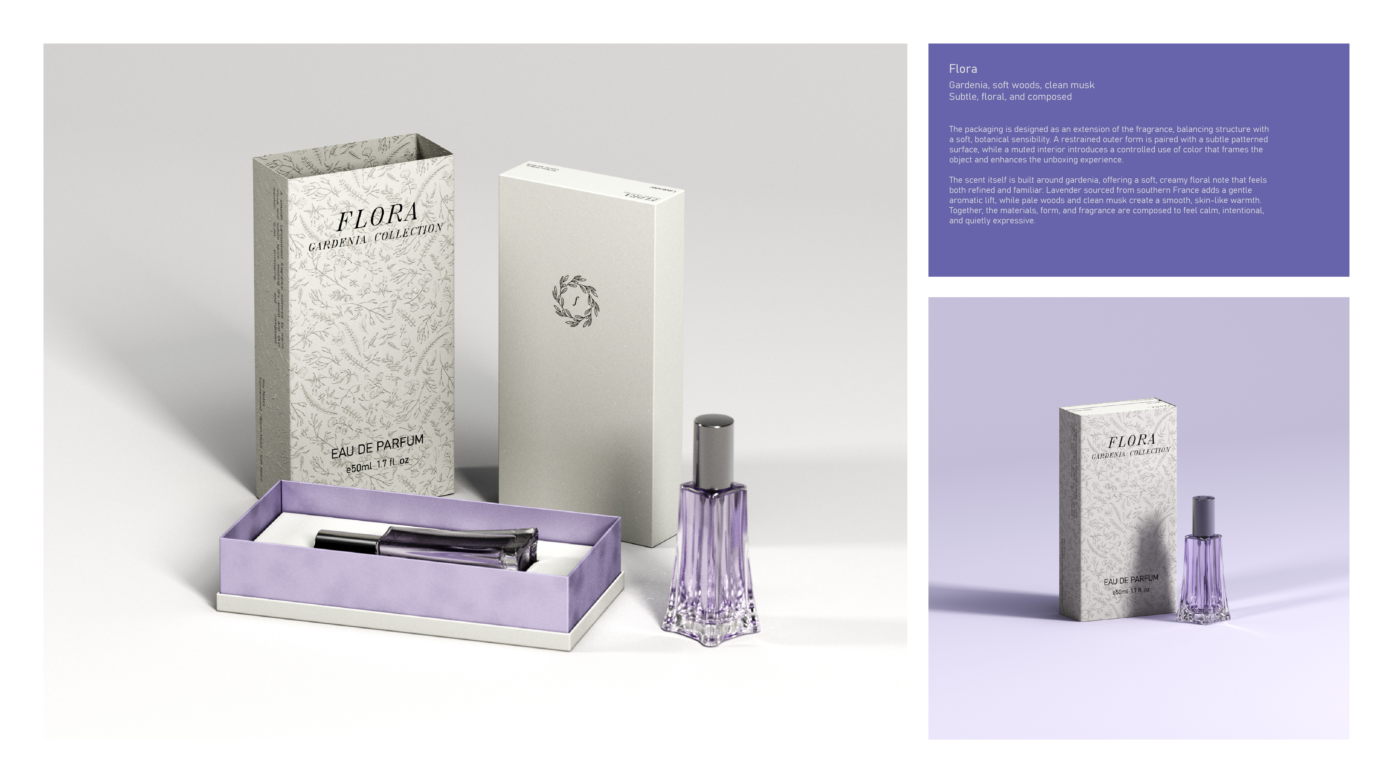 An exploration of refined form language for a premium fragrance concept, focusing on how object, packaging, and visual presentation work together to communicate quality and restraint. The bottle design highlights material transparency and vertical structure, while the packaging introduces a calm, tactile experience suited for a direct-to-consumer product.