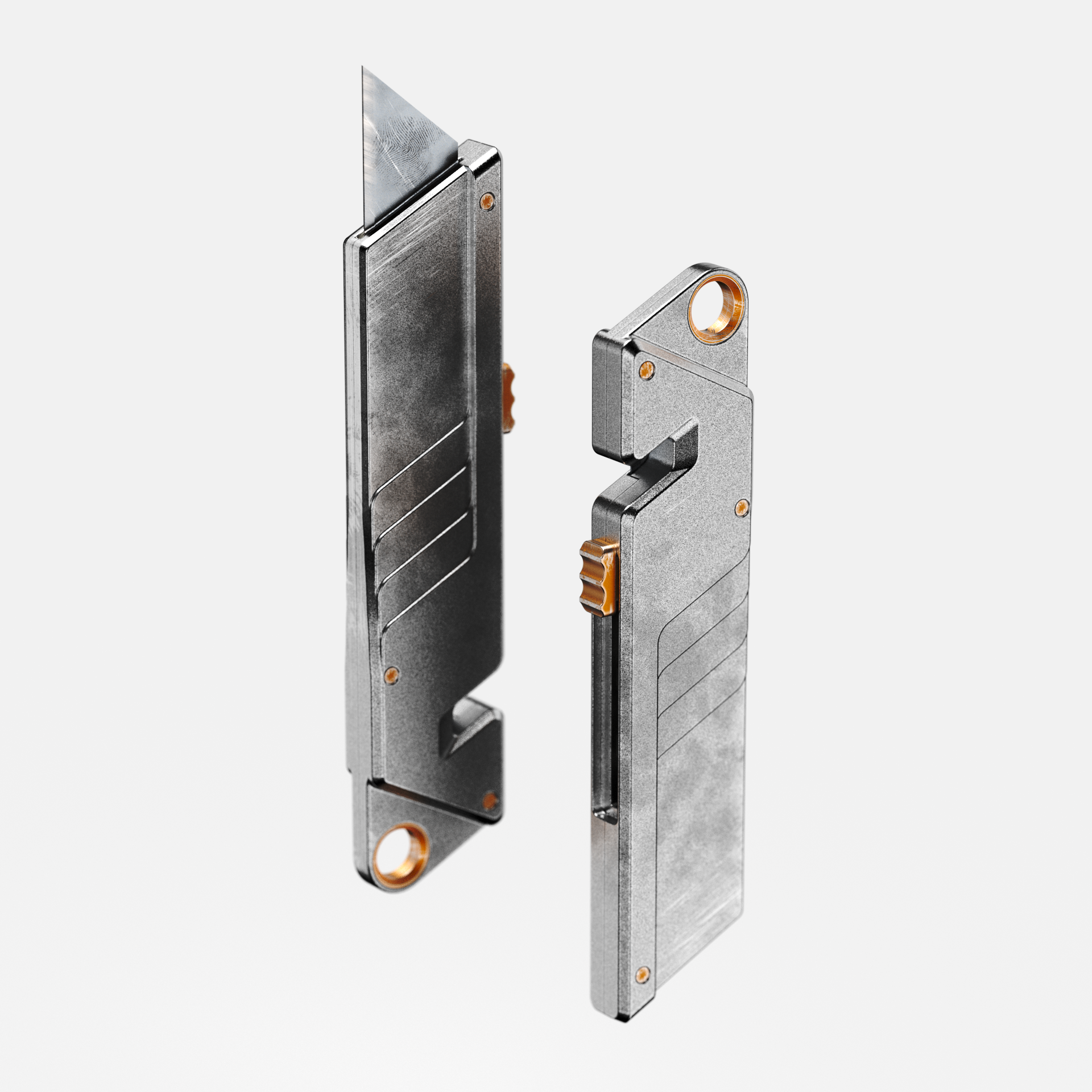 Creating a Utility Blade for a Render weekly submission which turned into a more developed project. I was inspired by seatbelt cutters and adding additional functionality to the spare blade. This was an experiment in adding significant wear to the material through texture and displacement maps in Keyshot. This was my first of many entrances into renderweekly