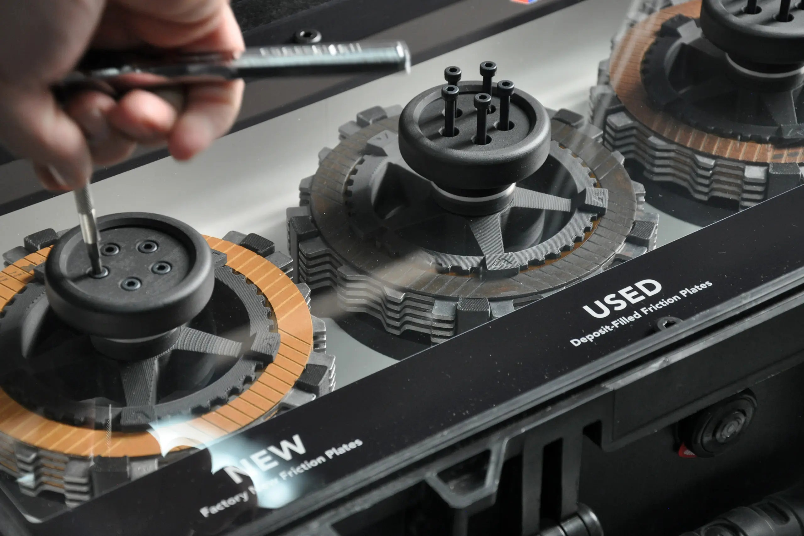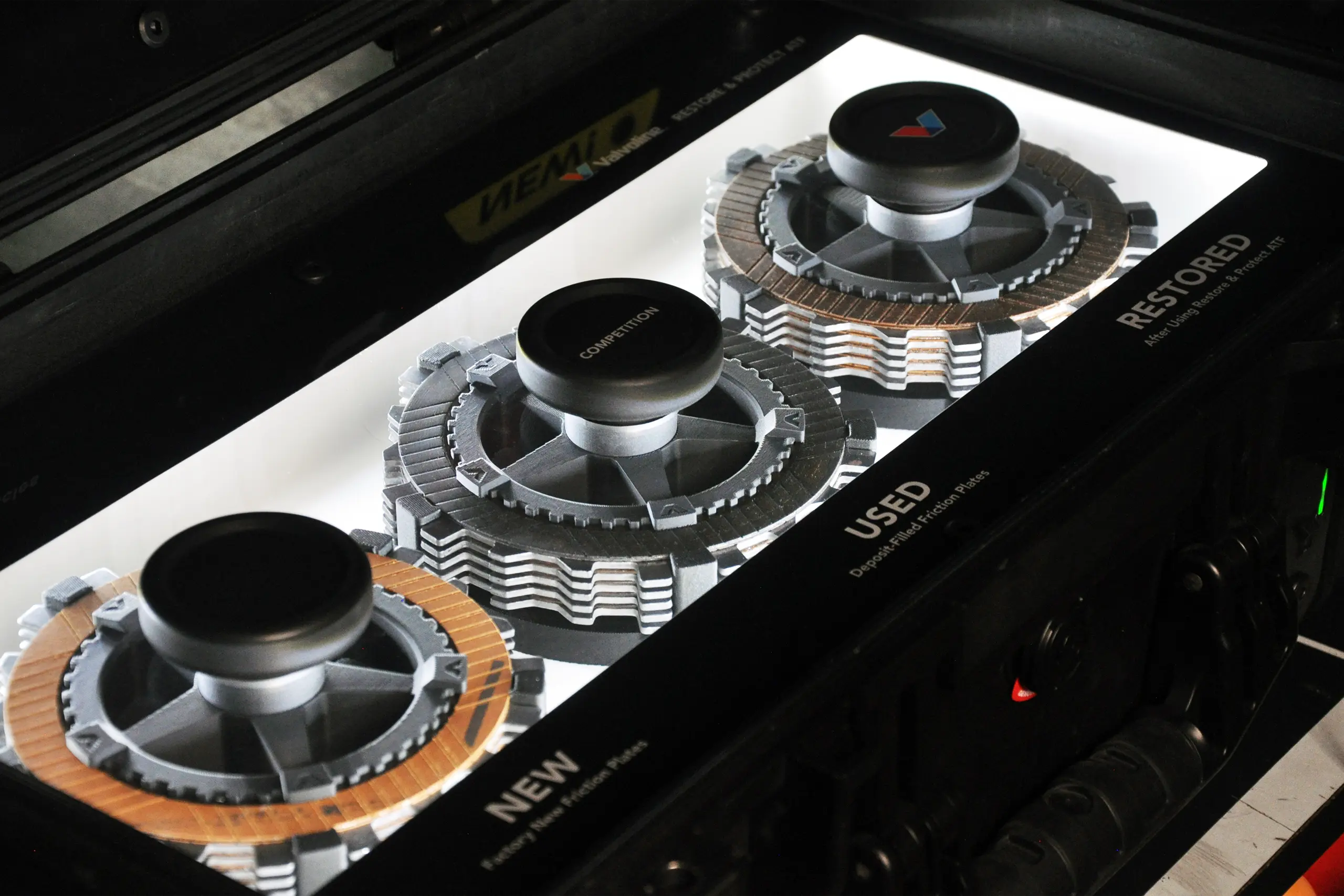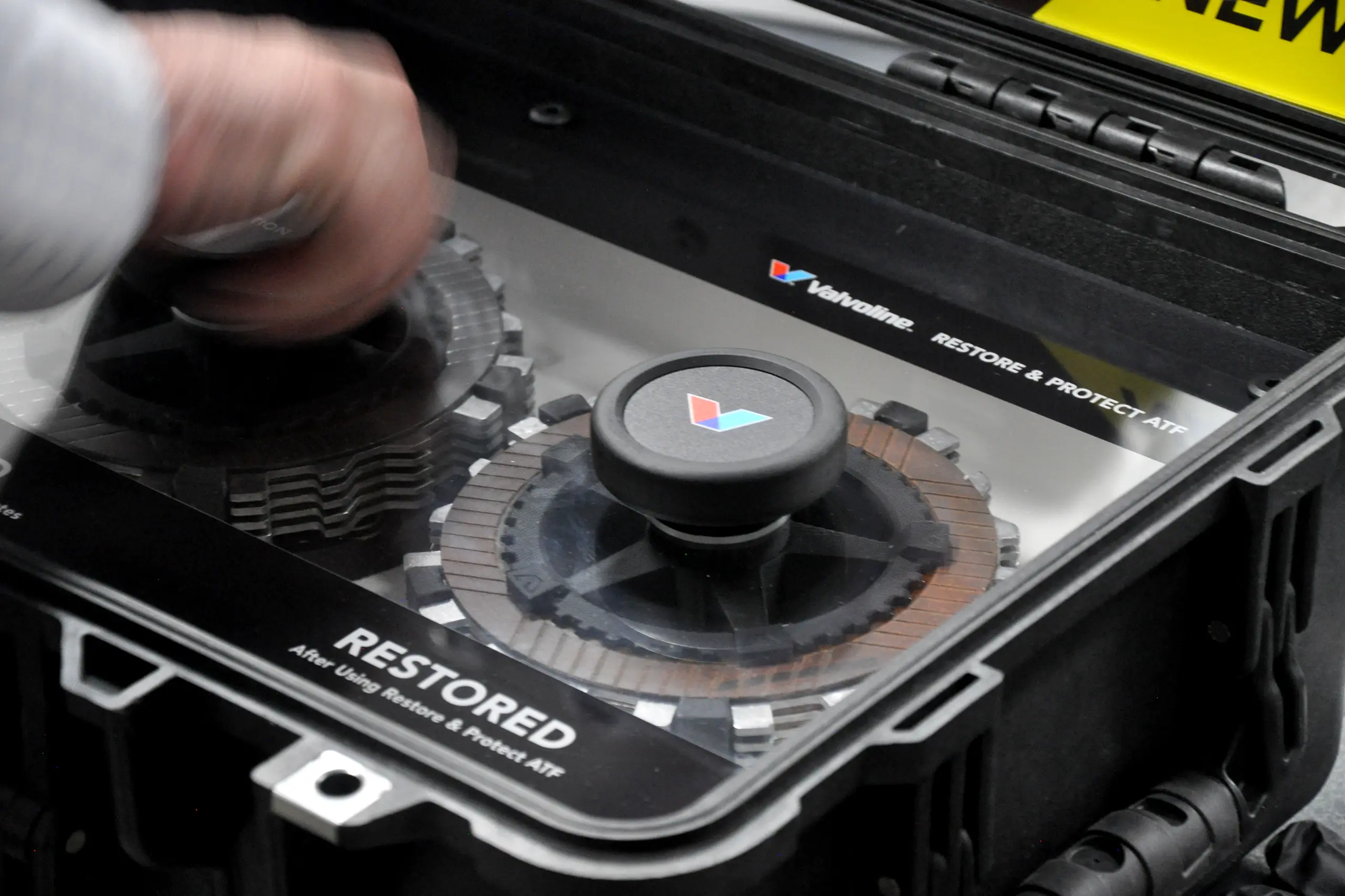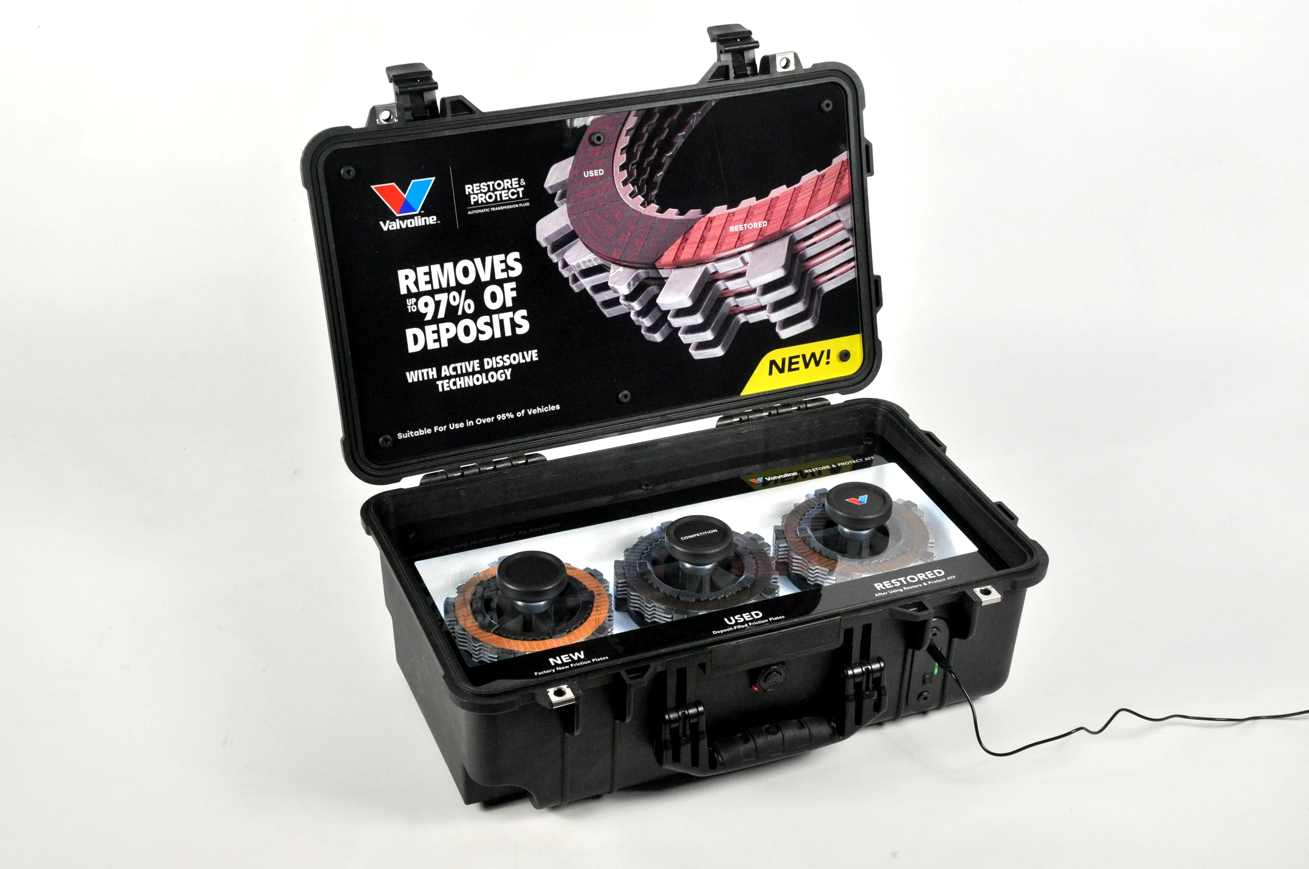 Valvoline was seeking an interactive sales tool to create a more engaging and hands-on demonstration of their automatic transmission fluid. They came to us to help develop a series of on-the-go cases to help showcase their revolutionary technology. Along with prototyping the case, we created visuals to highlight wear and restoration of automotive clutch plates.